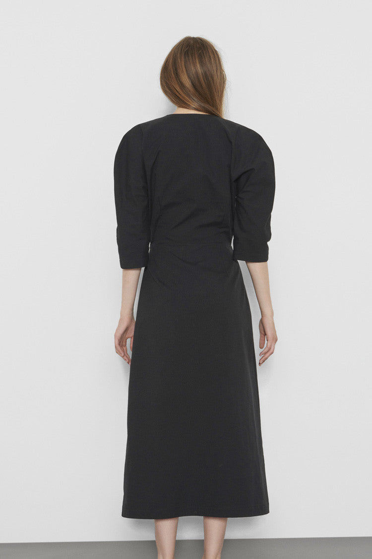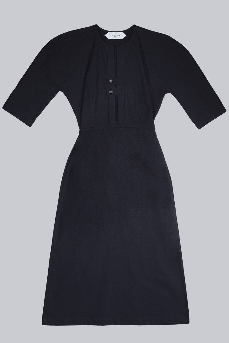 Mumtaz midi dress. Tight waist and rolled up sleeves.