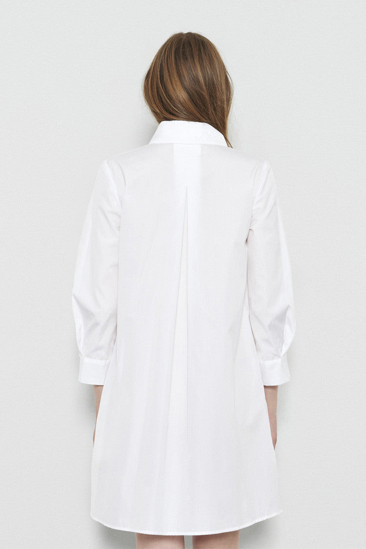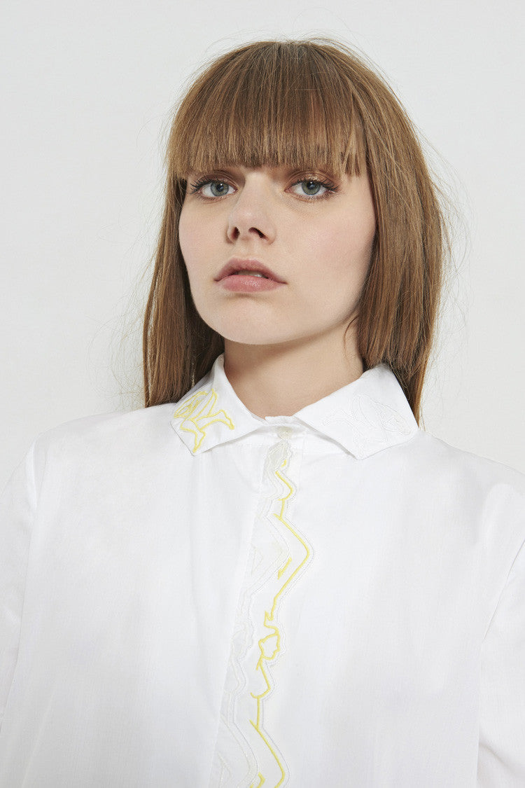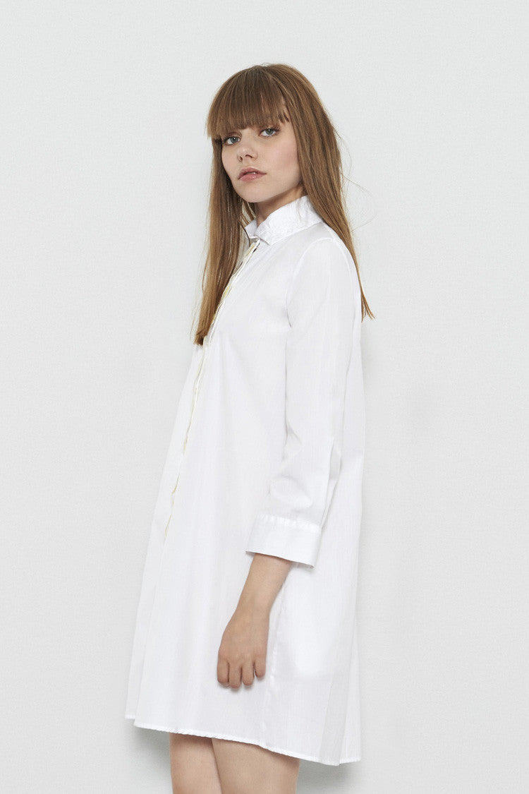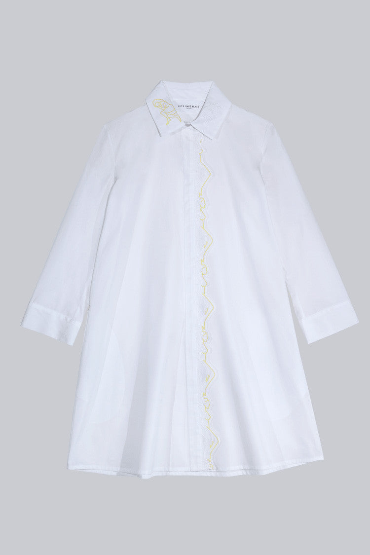 Venus shirt cotton dress. “Nus” theme embroidery placed on the collar and the placket.