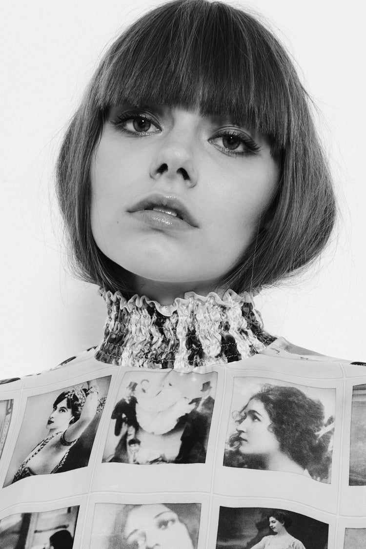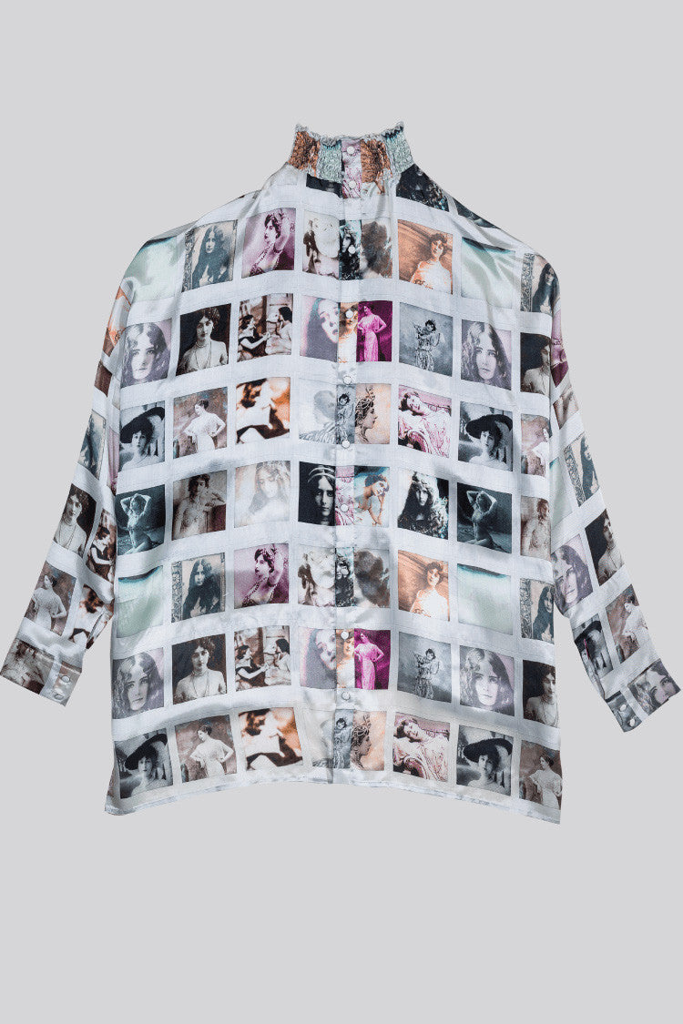 Eupraxia oversized turtleneck blouse in our “Courtisanes & Polaroïde” print. Long sleeves and buttons in the back.