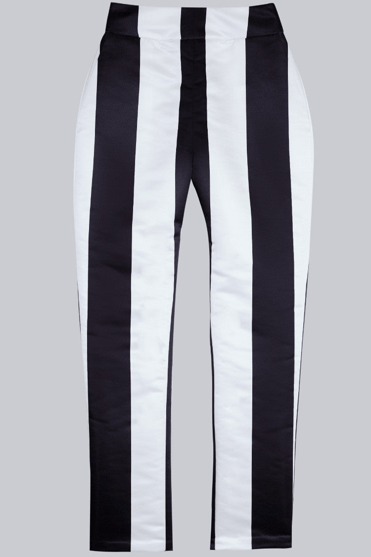 Ninou Bardot style trousers in our “Bayadères” print. High waisted and fitted cut. Two pockets on the front.